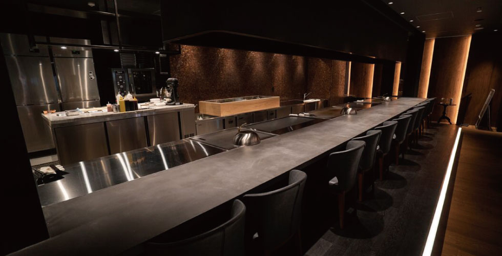 鉄板を目の前に臨場感を味わうカウンターはもちろん、